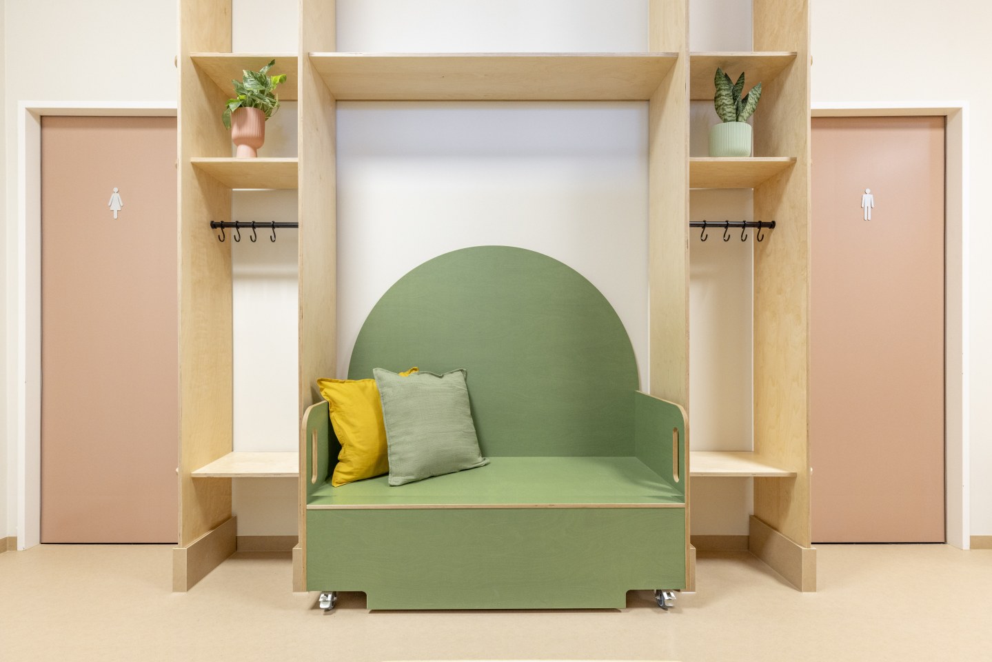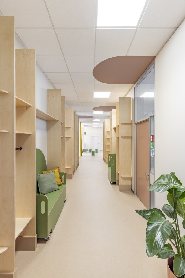 Birkenholz, biobasierte Bodenbeläge und natürliche Farben verbinden Funktionalität mit Wärme bei gleichzeitiger Wirtschaftlichkeit.