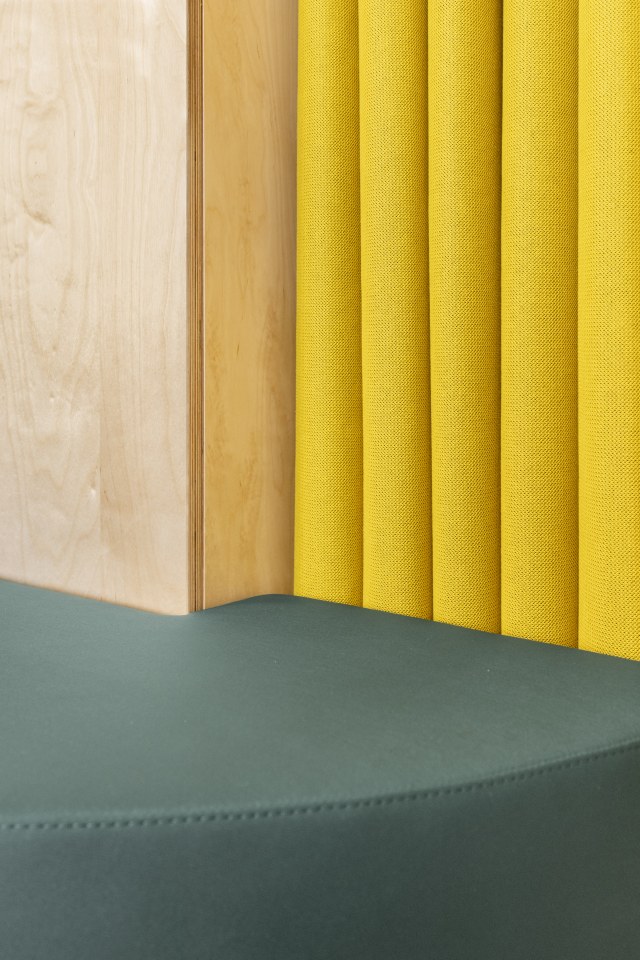 Im Herzen des Gebäudes liegt die „Mitte“. Ein Raum, der verbindet – offen, wandelbar, lebendig. Hier wird gelernt, gelacht, gemeinsam gegessen und gestaltet. Bewegliche Möbel und textile Vorhänge schaffen Flexibilität, Licht und Geborgenheit zugleich. Ein Ort, an dem Gemeinschaft wächst – und Lernen Freude macht.